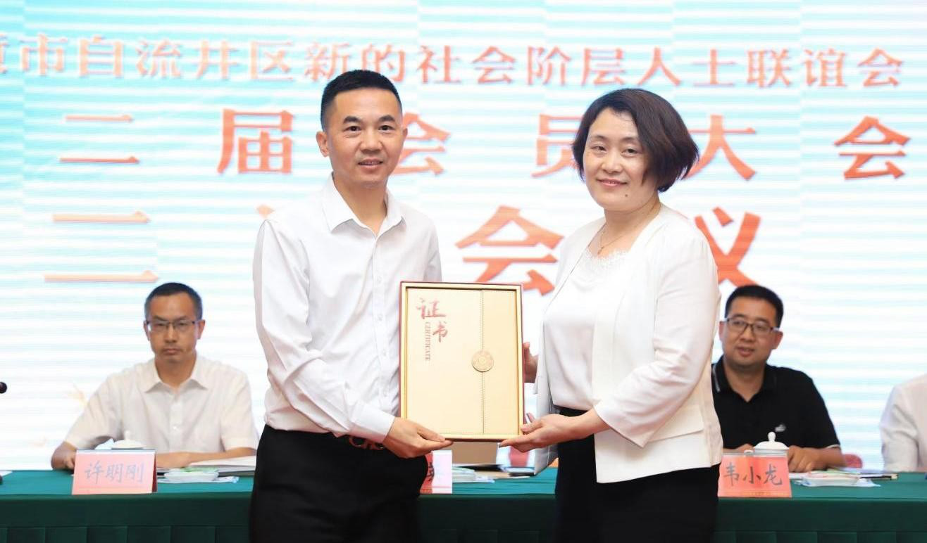 5 月 30 日下午,自贡市自流井区新的社会阶层人士联谊会换届大会暨第二届第一次会员代表大会成功召开。市委统战部副部长许明刚出席会议并讲话;区委常委、统战部部长每桂英出席会议;市新联会会长刘成出席会议并致贺信;市新联会副会长、富顺县新联会会长杨立强代表友好区县新联会出席会议; 市委统战部新阶科负责人,自流井区各民主党派主委副主委、各社会团体会长、区委统战部领导班子成员到会祝贺。