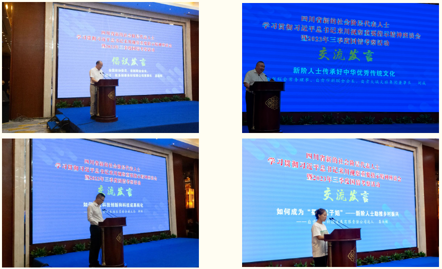 活动期间,召开四川省新的社会阶层代表人士学习贯彻习近平总书记来川视察重要指示精神专题座谈会,会上自贡市新联会会长刘成、自贡航空产业园区管委会副主任钟昕、网络人士龚向桃(蜀中桃子姐)3人分别围绕新阶人士助力传承中华优秀传统文化、推进科技创新及成果转化、新阶人士助推乡村振兴进行交流发言,分享自身感悟。
