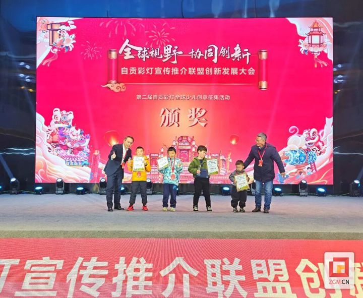 大会还为第二届自贡彩灯全球少儿创意征集活动获奖代表进行了颁奖;省市领导、嘉宾上台共同点亮彩灯柱,宣布联盟正式启动;黄劲向自贡彩灯宣传推介联盟首届召集人授旗。