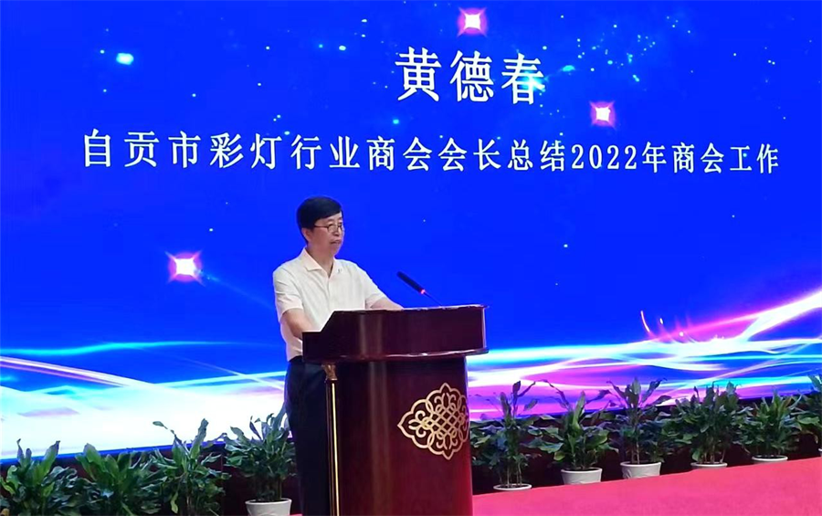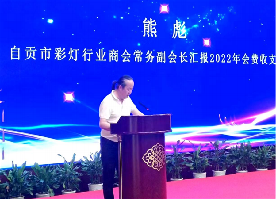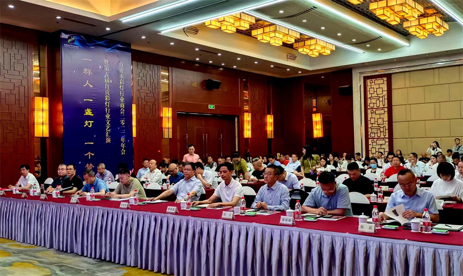 2023年5月19日,自贡市彩灯行业商会2022年年会暨第五届彩灯行业文艺演出。会议进行了五个议程,文艺演出在檀木林宾馆举行。出席会议的有市政协、统战部、民政局、人社局、文旅局、市场监管局、市工商联(总商会)领导以及兄弟商会、特邀嘉宾、新闻媒体和会员单位等计200余人。