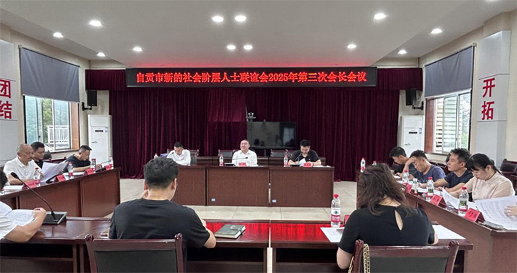9月26日下午,自贡市新的社会阶层人士联谊会(以下简称“市新联会”)召开2025年第三次会长会议。会议由市新联会会长、自贡大域文化旅游集团有限公司董事长刘成主持,市新联会班子成员、秘书长、副秘书长、监事长等共同参加。